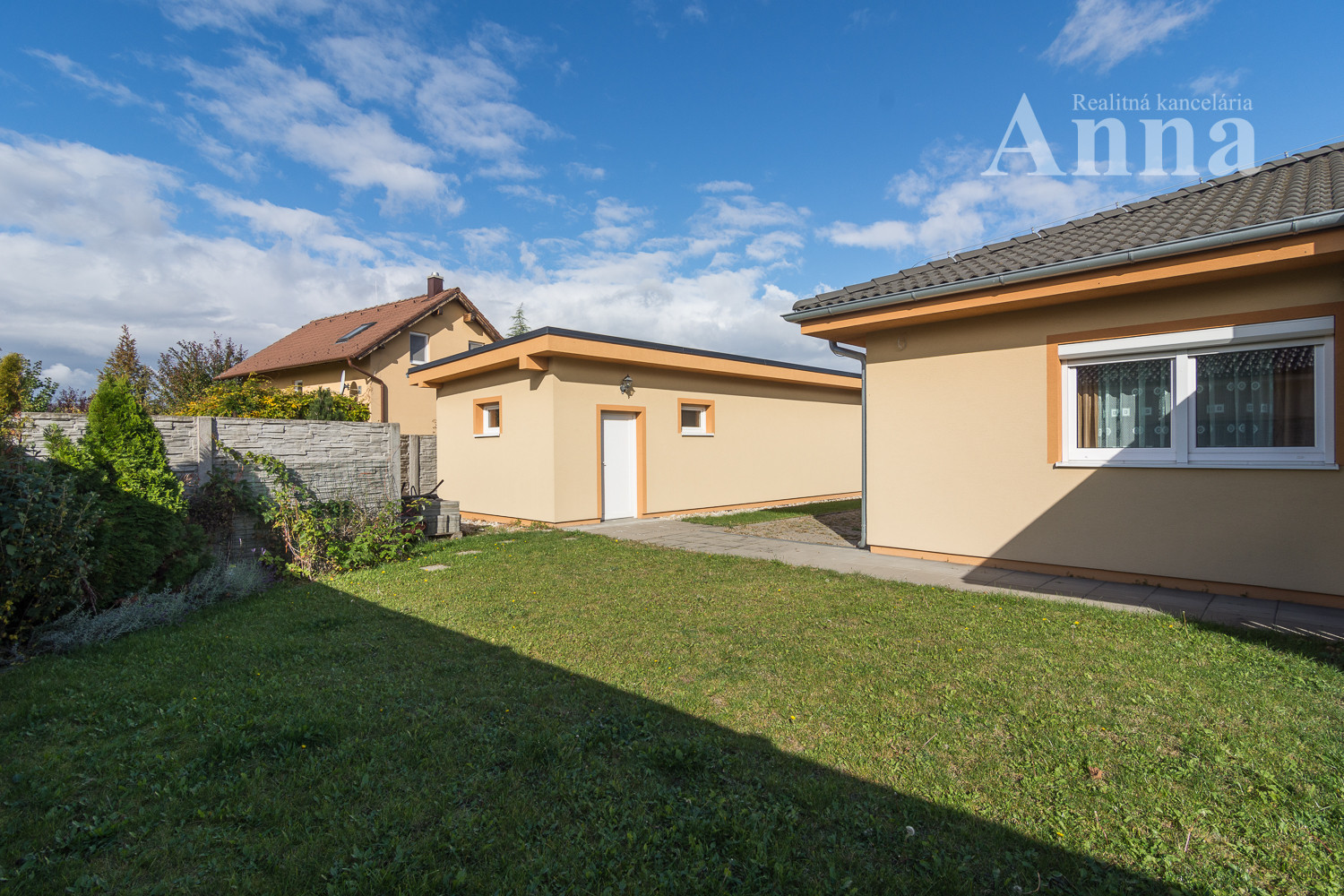Ponúkame na predaj 4-izb. rodinný dom (bungalov) so samostatnou veľkou garážou v obci Slovenský Grob, časť Malý Raj (3km od Pezinka, 13 km od Bratislavy). Bungalov sa nachádza v zástavbe rodinných domov. V najbližšom okolí sú všetky pozemky zastavané.