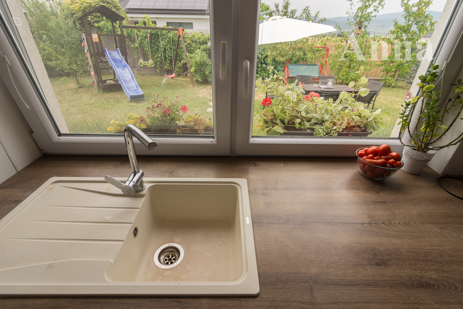 - Záhrada s trávnikom, mladými ovocnými stromami, viničom a figovníkmi – ideálna na oddych aj detské hry
