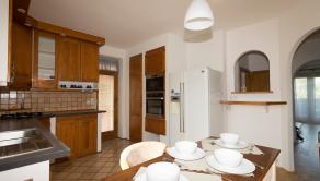 - drevená kuchynská linka so spotrebičmi (el. rúra, plynová varná doska, umývačka riadu, americká chladnička, mikrovlnná rúra),