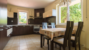 - kuchynská linka so zabudovanými spotrebičmi (chladnička/mraznička, umývačka riadu, el. rúra, plyn. varná doska, digestor)