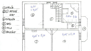 Poschodie (93 m2): 3 veľké samostatné izby, chodba, kúpeľňa (rohová vaňa, 2x umývadlo, sprch. kút), WC (bidet, umývadlo, wc), 2x balkón.