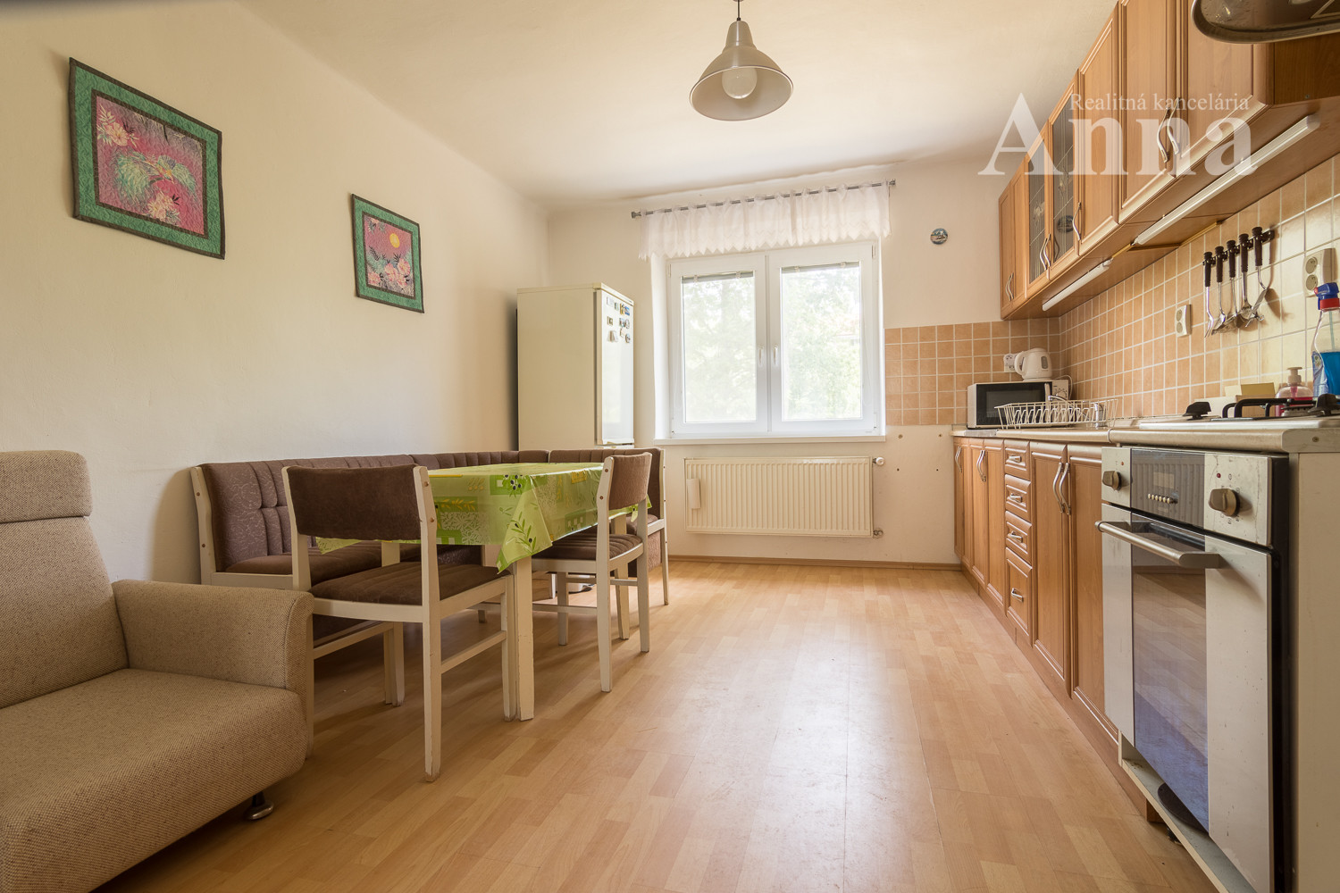 Dispozícia a popis: Byt pozostáva z 2 izieb, kuchyne, kúpeľne (WC, umývadlo, práčka, vaňa), predsiene a pivnice. Celková výmera je 55 m2 (z toho pivnica cca 7 m2). Nachádza sa na zvýšenom prízemí vo 4. poschodovom dome, je orientovaný na 2 strany S - J.