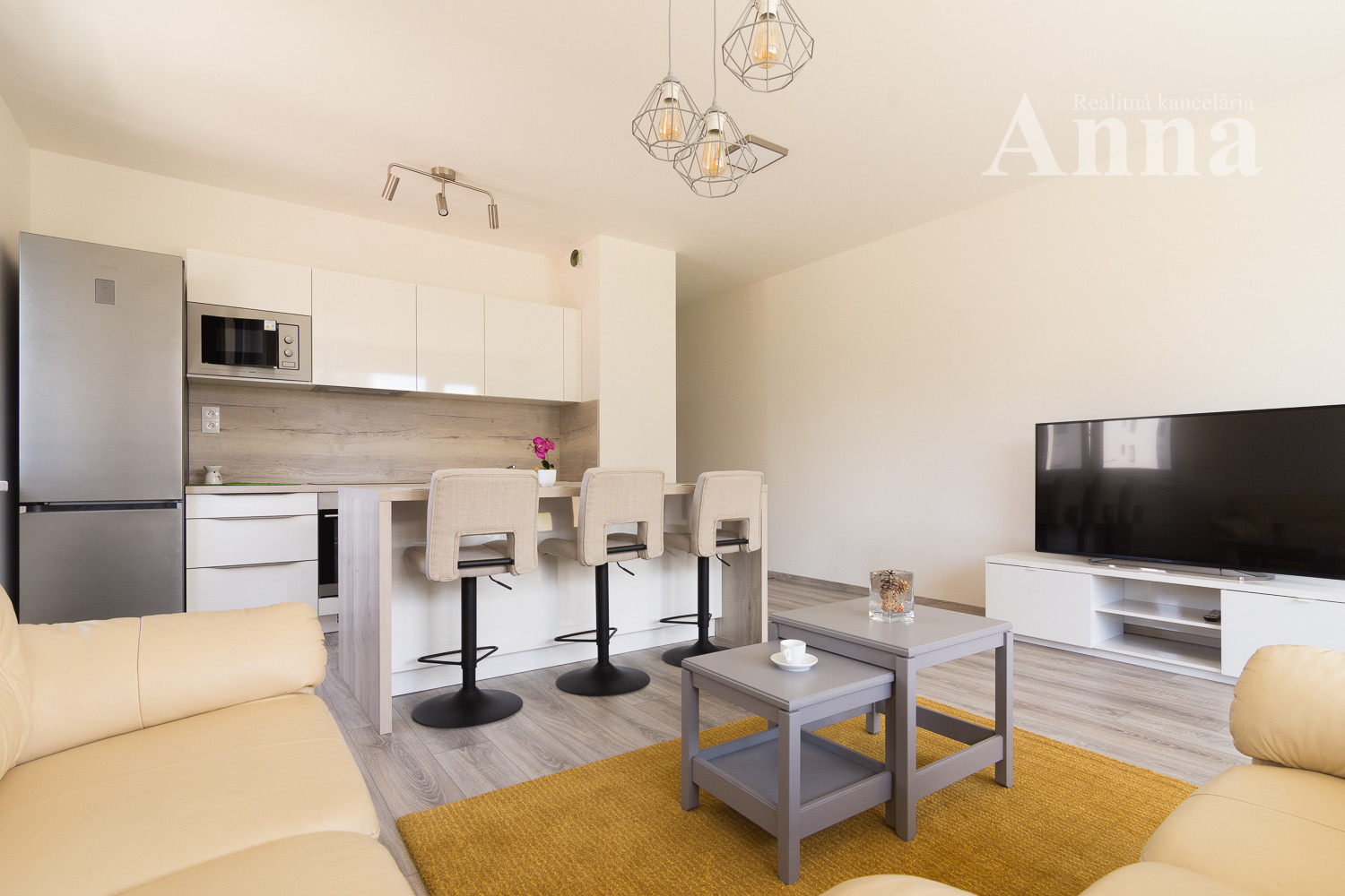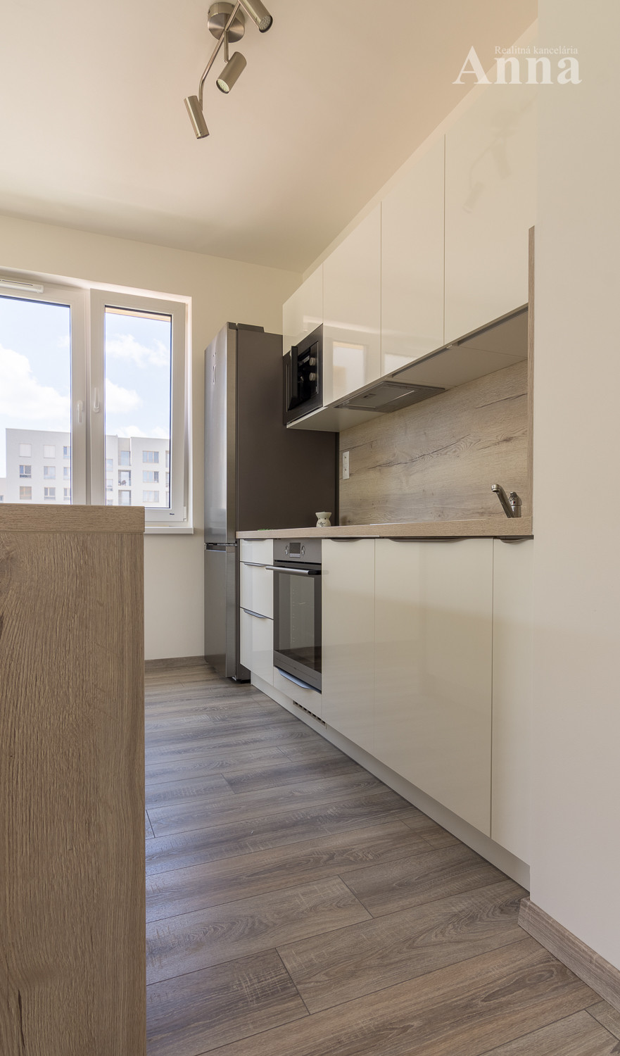 - nová kuchynská linka na mieru so zabudovanými spotrebičmi (indukčná varná doska, digestor, el. rúra, mikrovlnka, chladnička/mraznička, umývačka riadu)