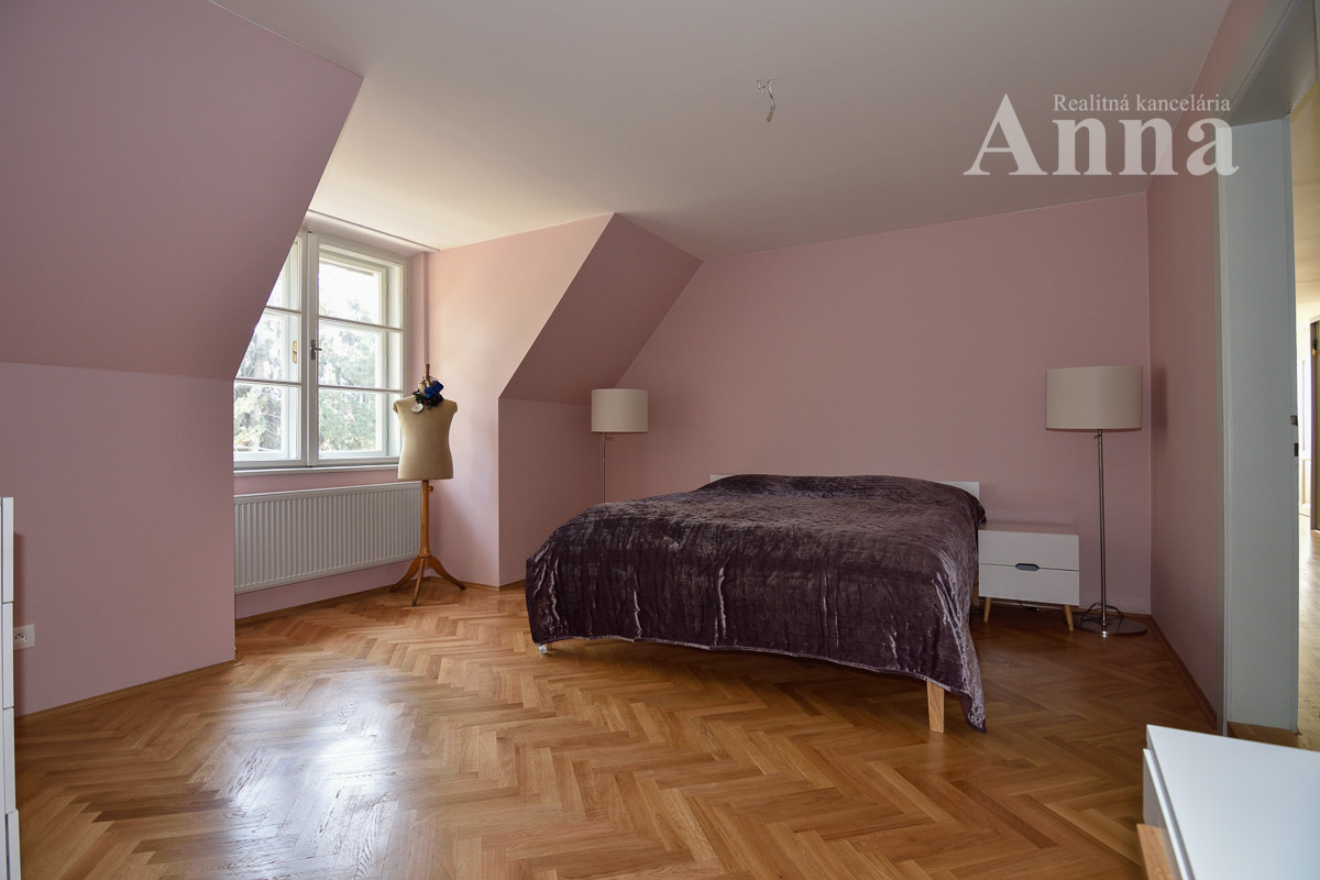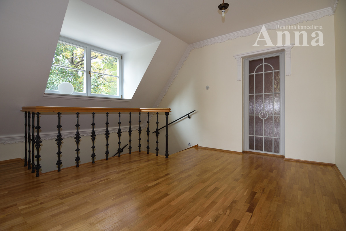 Výmery: celková výmera pozemku je 618 m2, úžitková plocha domu je 520 m2 (160 m2 suterén, 180 m2 prízemie, 140 m2 poschodie, 40 m2 podkrovie).