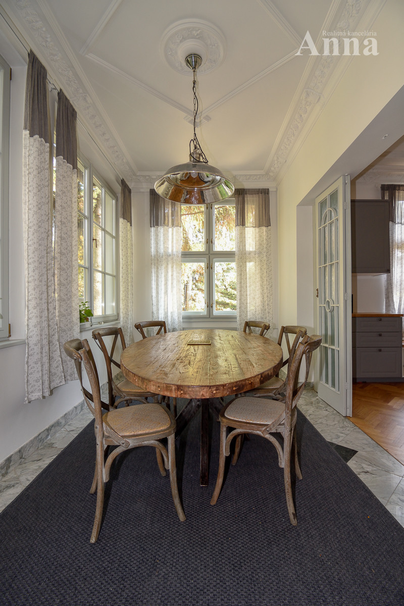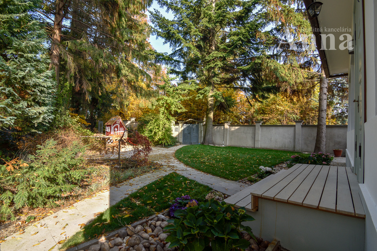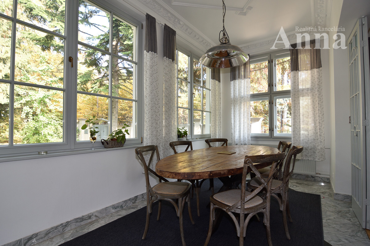 Stav a popis objektu: Vila prešla kompletnou rekonštrukciou. Je postavená z pálenej tehly (obvodové murivo: hrúbka 750 mm suterén, zvyšok domu 500 mm), v suteréne vlastná studnička, nová strešná krytina Prefa (hliník) + klampiarske prvky, nové rozvody vody, el. a odpadu, (LPG - zásobník je osadený vo dvore, alternatívne el. kotol), reštaurované pôvodné masívne dvere + zárubne, drevené dvojité okná a nové drevené okná s trojsklom, dubové parkety, stropy sú štukové (štuky sú originálne navrhnuté od akademického sochára A. Gábrika) , betónové schodisko obložené drevom, oplotenie pozemku kameň/betón, veľká nová kuchynská linka so zabudovanými spotrebičmi (umývačka riadu, indukčná varná doska, el. rúra), na pozemku sa nachádza jazierko s fontánou (v súčasnosti vypustené). V dome sa nachádzajú nový krb a funkčné historické keramické kachle.