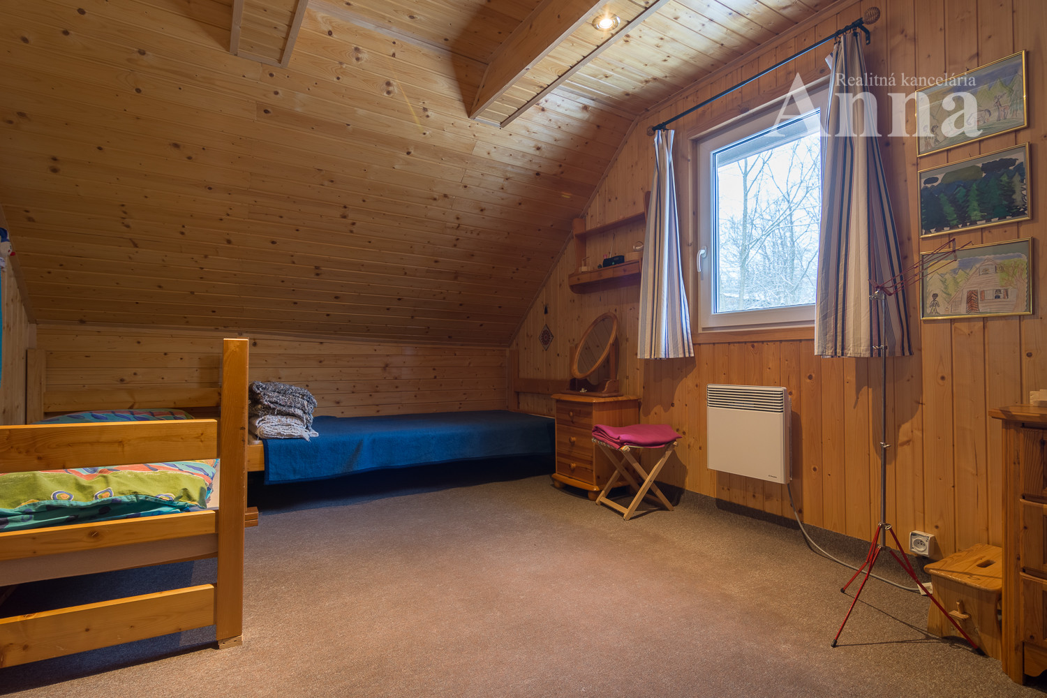- kúrenie a teplá voda: el. radiátory v izbách + krb, ohrev teplej vody bojlerom